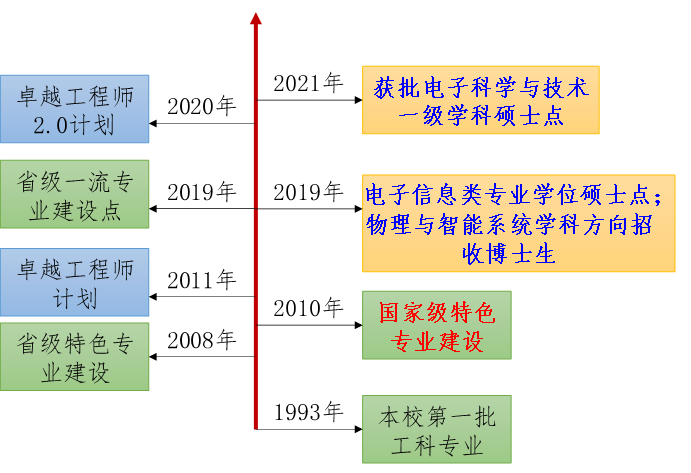 本专业为国家级特色专业、国家级一流专业建设点。现有物理与智能系统二级学科博士学位授权点、电子科学与技术一级学科硕士点以及电子信息类专业学位硕士点。