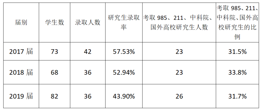 近3年物理学专业毕业生研究生录取率统计表