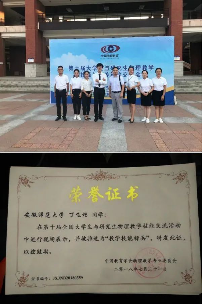 全国大学生与研究生物理教学技能交流活动-物理学专业丁飞扬获得“教学技能标兵”称号