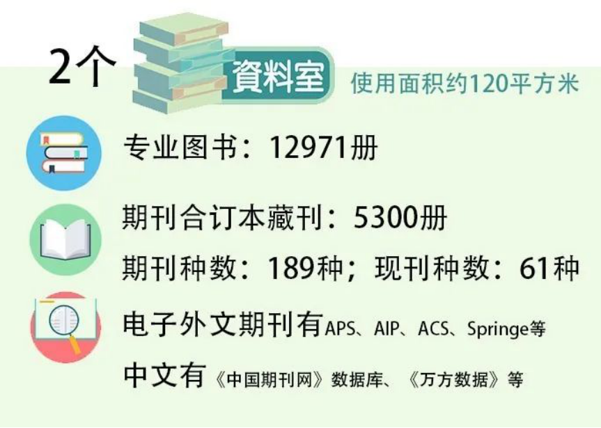 实验及设备:物理学专业总的实验室面积3770㎡,生均实验室面积约10.3㎡。仪器设备总价值3865万元左右,生均约10.56万元。