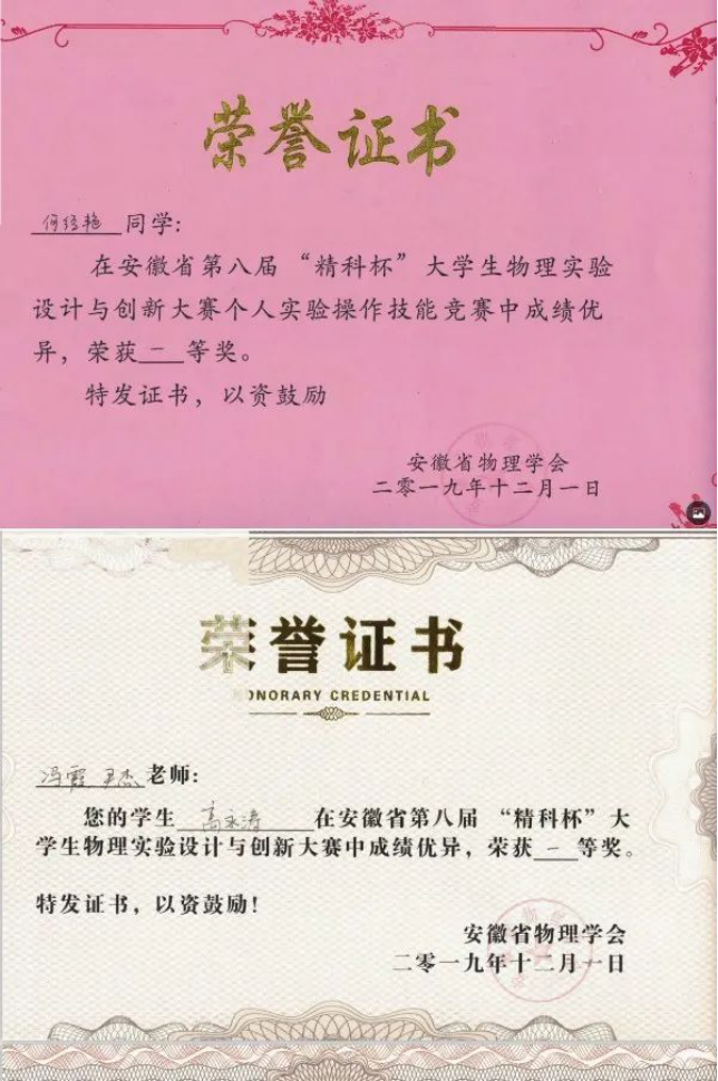 安徽省”精科杯”第七届大学生物理实验创新与设计大赛二等奖