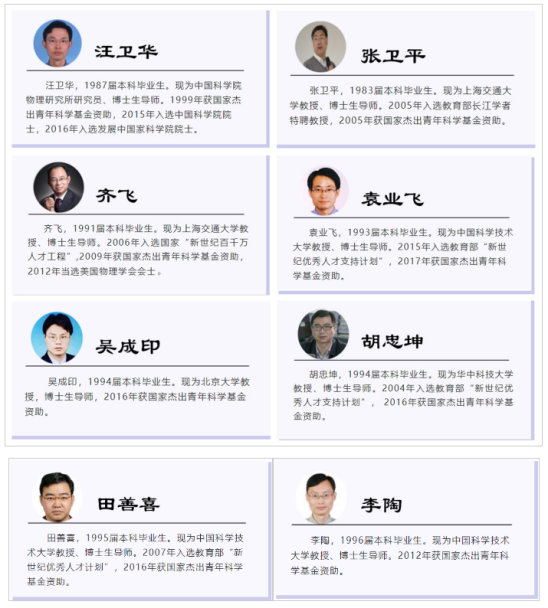 杰出校友:办学至今,学院先后为国家政治、经济、教育、科技、文化等领域输送了大批优秀人才,其中中国科学院院士1人,国家杰出青年科学基金获得者10人;有百余名毕业生已成为基础教育界业务骨干、示范高中校长或教育行政部门主要管理者,以及众多成功企业界人士。
