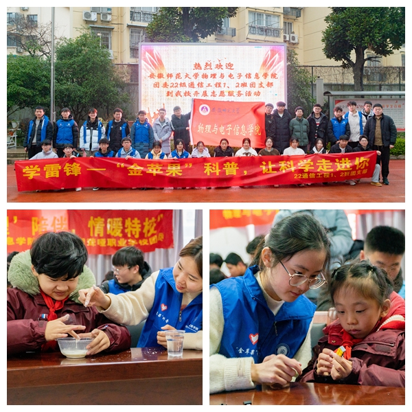 组织志愿者走进芜湖聋哑职业学校,为学生科普“生活中的物理”,通过一系列的物理小实验、互动小游戏,让孩子们了解身边的物理现象,在欢乐中学到知识。为特殊学校学生播撒了好奇与探索的种子,点亮了孩子们心中追寻知识的光芒。