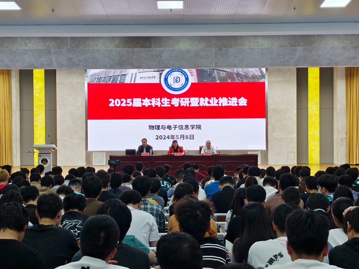 为全力做好做好2025届本考试考研暨就业指导服务工作,5月8日下午,无翼鸟 在理科大楼报告厅举行2025届毕业生考研暨就业推进会。学院党委书记李娟、副书记黄友生、副院长宁利新、2025届全体本科生及辅导员参会。会议由黄友生主持。