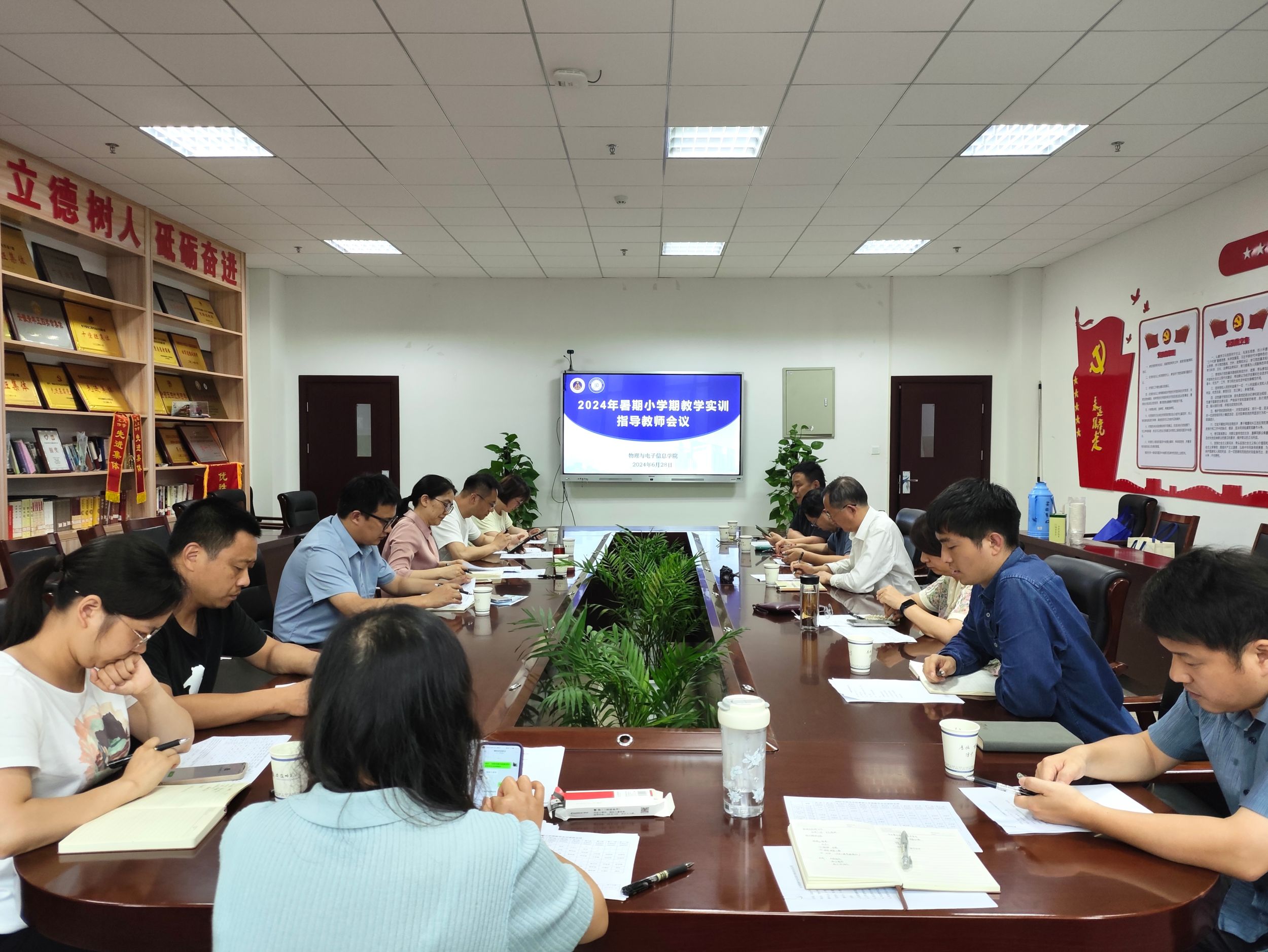 召开暑期小学期教学实训指导教师会议。芜湖三中王军、芜湖十二中王宗翠、学院院长吕建平、副院长张爱清、物理学专业副主任汪志荣及小学期教学实训指导教师参加会议。本次会议由张爱清主持。
