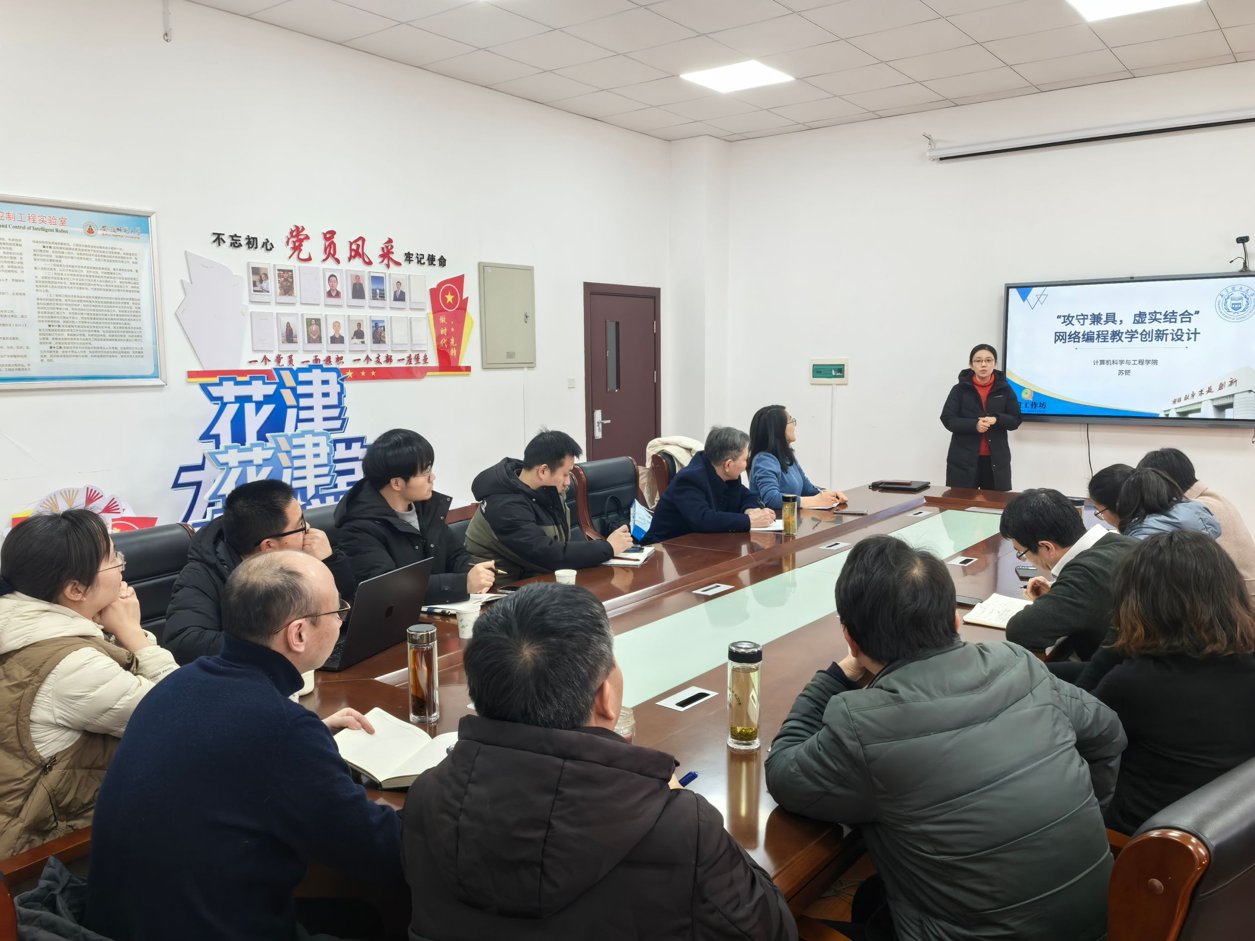 会上,苏铓老师以《“攻守兼具,虚实结合”——网络编程教学创新设计》为题,围绕“主题如何新”“内容如何新”“报告如何新”“汇报如何新”,详细向与会老师解读教学创新大赛的主题内容和基本规则。同时,从教学创新报告写作示例出发,详细介绍了创新报告写作的内容、亮点和重点,同时介绍了课程建设和课程改革的主要思路及具体举措,指导教师如何以赛促教。会后,与会老师针对自身教学过程中的难点和疑问开展交流讨论。
