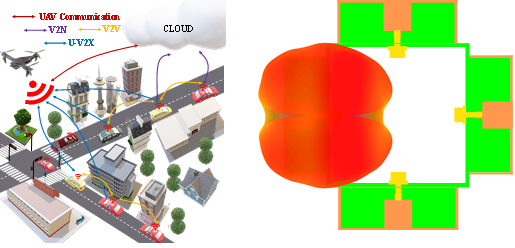 左图:多频无人机MIMO天线应用场景。右图:多频无人机MIMO天线方向图。