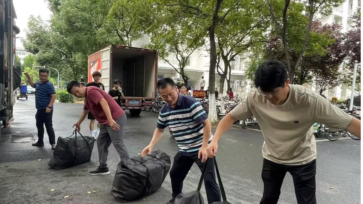 师生齐心,言传身教。为确保搬迁工作有序高效推进,学院领导班子成员、各班主任以及全体辅导员积极投入搬迁一线,言传身教,与学生同向同行。搬迁过程中,师生流水线作业,手提肩抗,笑容绽放,热火朝天的搬迁现场成为一线育人的生动课堂。