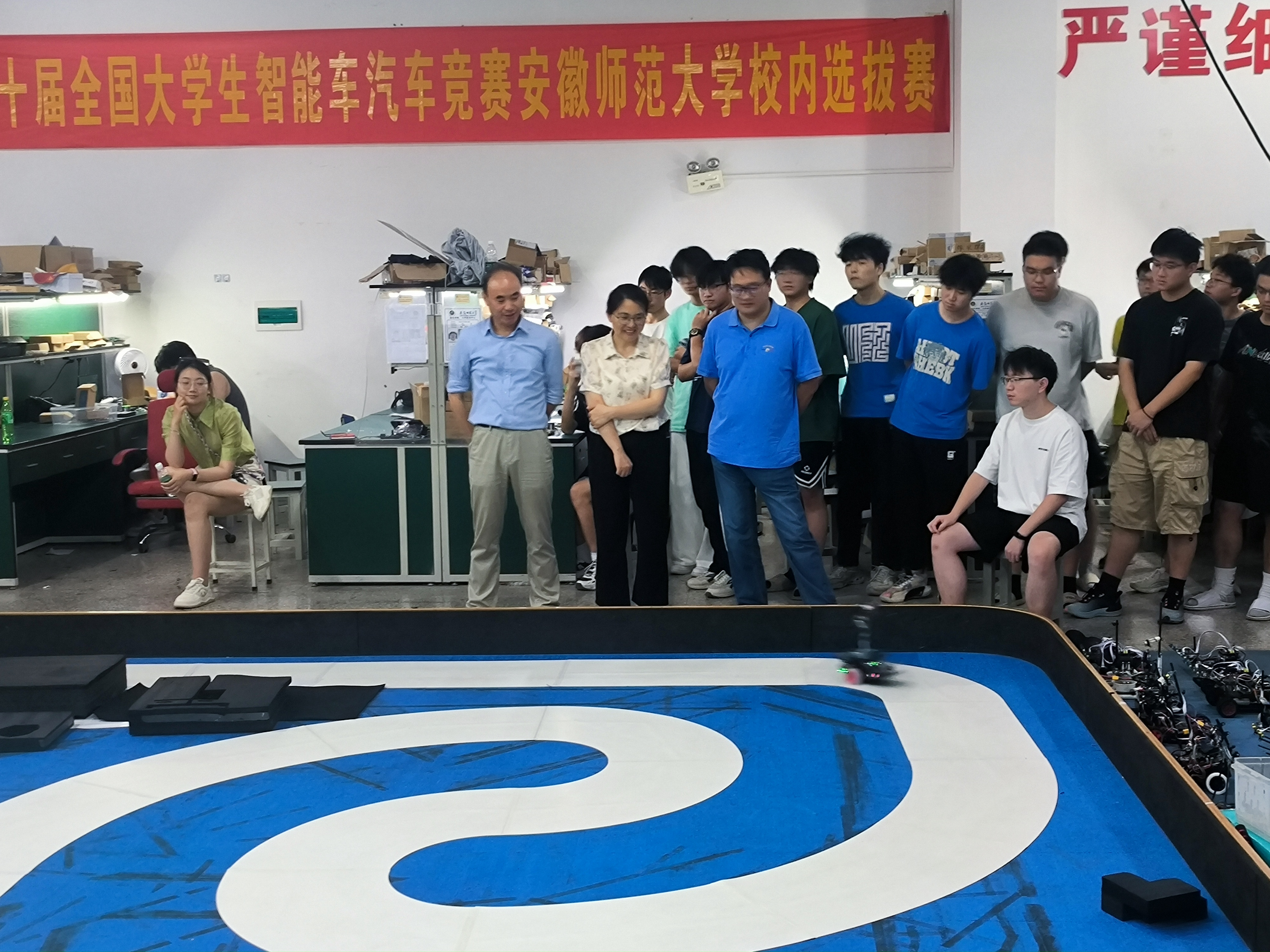 7月18日,全国大学生智能汽车竞赛校内选拔赛在工科实训中心举行。本次比赛分为三个分赛场同步进行,经过激烈角逐,最终选拔出26支优秀团队代表学校参加省级赛事。学院院长吕建平、教学副院长张爱清亲临现场指导,并为参赛学生发放慰问品,鼓励学子们赛出水平、争创佳绩。