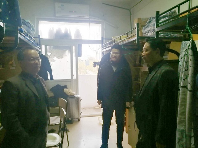 在走访寝室的过程中,学生们主动与领导老师交流自己的寒假学习生活状况。李娟耐心询问了毕业班学生的就业选择和考研情况,并勉励同学们在新学期要保持良好心态,继续努力奋斗,争取获得满意的工作或考取理想的大学。郑贤锋则告诫低年级的同学,要尽快“收心”投入新学期学生生活、要做好生涯规划,多去图书馆和教室,做一个勤奋学习、积极向上的新时代大学生。每到一处,领导老师除了了解学生的生活、学习情况,还重点排查了宿舍的安全隐患,排查有无使用违规电器,有无私拉电线,接线板使用是否规范等。