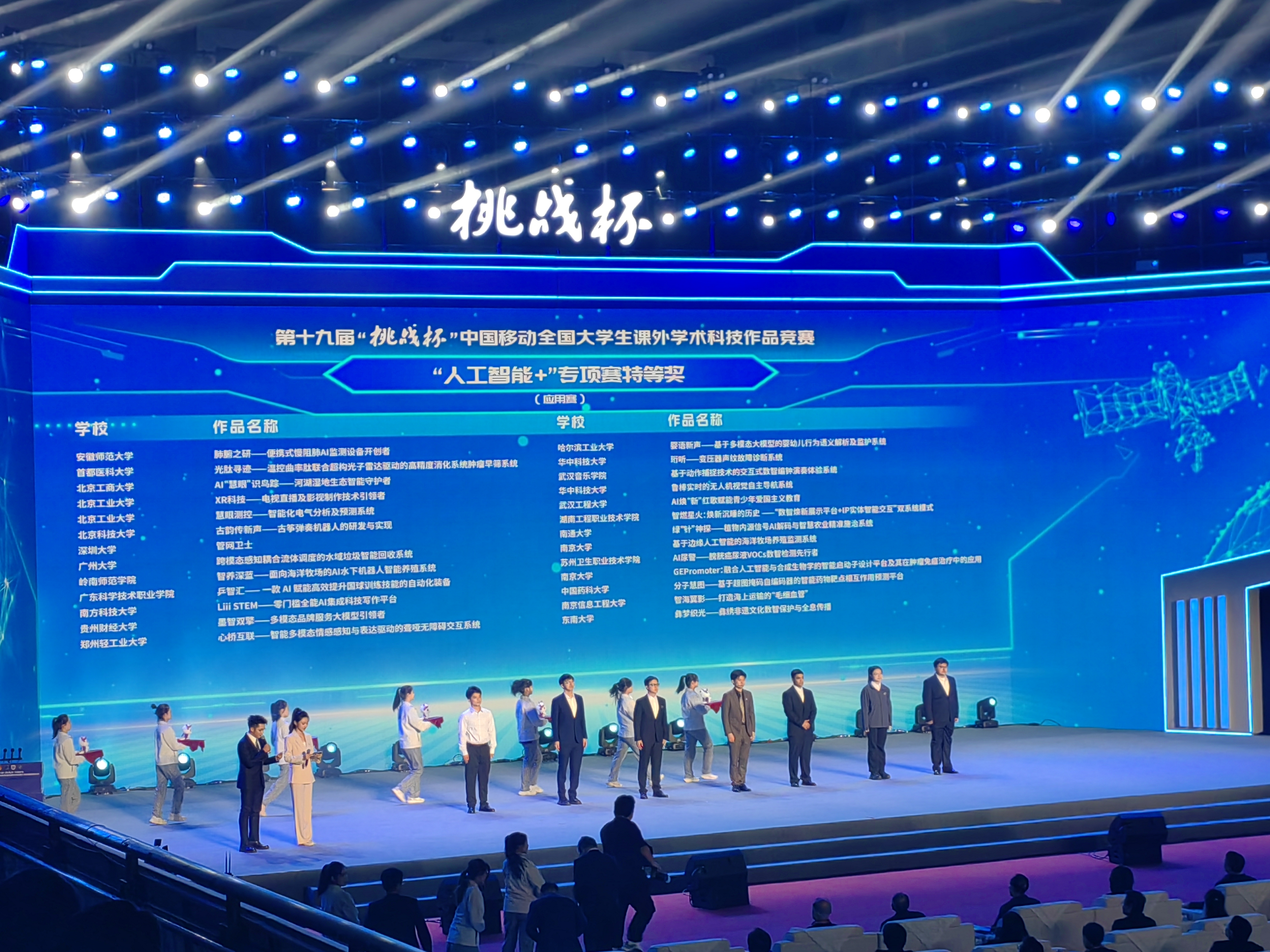 据悉,“挑战杯”全国大学生课外学术科技作品竞赛被誉为当代大学生科技创新的“奥林匹克”盛会,是具有导向性、示范性和群众性的全国大学生综合性学科竞赛。本届“挑战杯”竞赛由共青团中央、中国科协、教育部、中国社会科学院、全国学联和江苏省人民政府共同主办,共吸引来自全国2700多所高校的40余万件作品、300多万名学生参赛。640件作品入围主体赛终审决赛、643件作品入围“人工智能+”专项赛终审决赛。在终审决赛期间举办的科创报国汇报会上,多领域院士专家、科研团队、青年企业家讲述了科创报国故事,围绕科技强国建设和国旗下的赤子心、强国志、青年梦进行分享交流。此外,中国青年科技创新“揭榜挂帅”专项赛分别在北京、浙江和8个主擂台城市完成比赛。