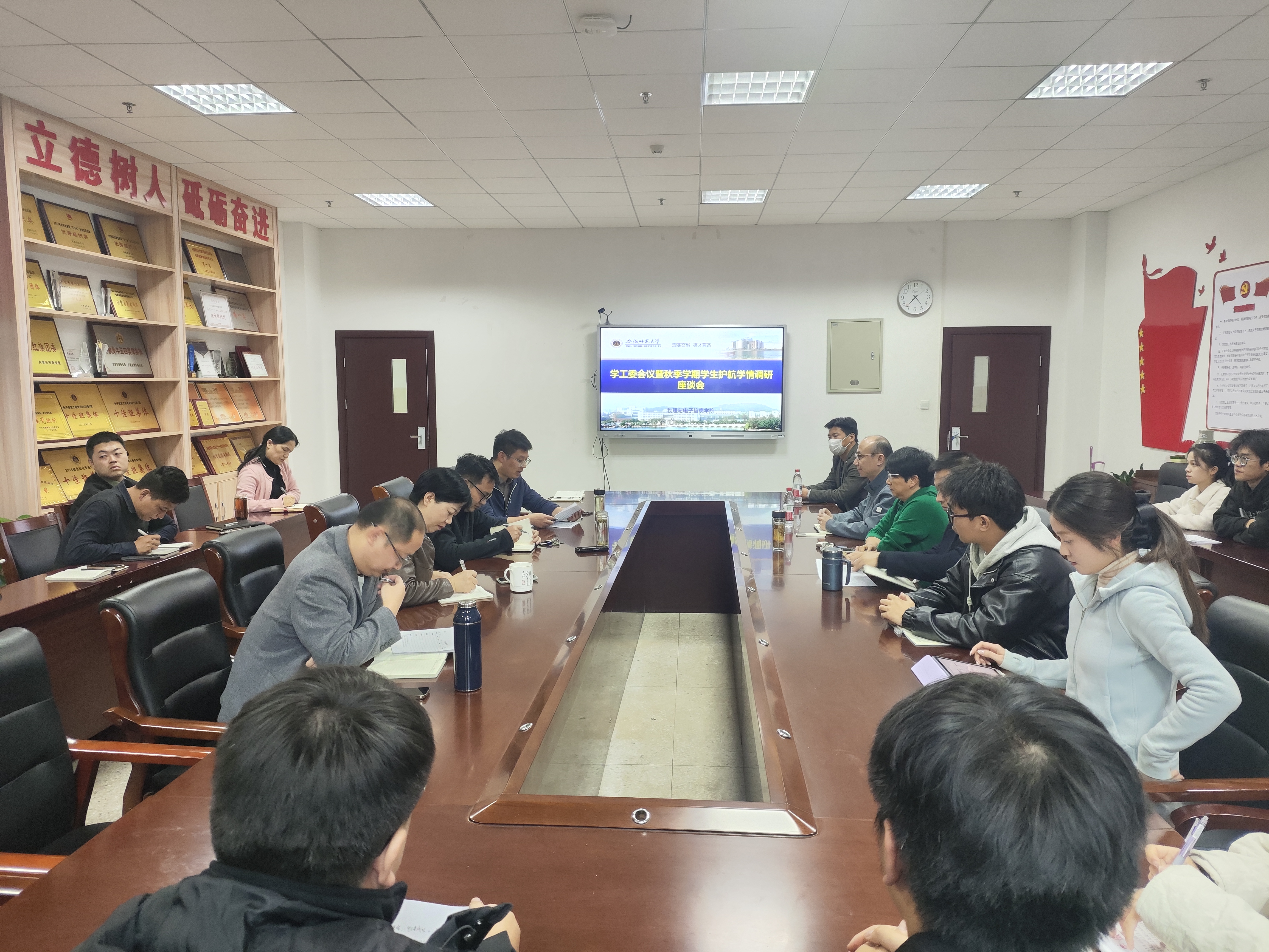 组织召开学工委会议暨秋季学期学生护航学情调研专题座谈会。学院领导班子成员、各专业负责人、相关科室人员、全体专兼职辅导员与来自各年级、专业、班级的学生代表齐聚一堂,共话成长。会议由学院党委副书记凌从祥主持。