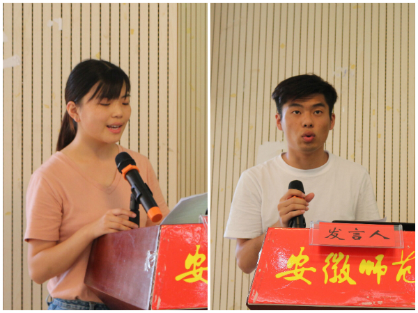 典礼总共四项议程。李娟书记首先介绍了本期培训班总体招生情况、培训日程安排以及结业考核要求。她指出,举办“双创”培训班是贯彻落实国务院办公厅、省政府办公厅和我校关于深化高等学校创新创业教育改革的有关文件要求,进一步做好大学生“双创”教育工作的重要载体和平台,对培养大学生创新思维和创新能力,激发学生崇尚科学和团队合作的精神,促进教学改革,探索创新拔尖人才的培养模式有重要意义。随后,首期培训班学生代表吴迎红、本期学院学生代表谢胜依次上台发言。来自2015级通信工程的吴迎红结合个人能力锻炼、团队协作互助和交流、创新思维和创新方法培养几个方面谈了自己在培训班的收获和成长;2016级通信工程的谢胜同学则代表本期全体学员郑重承诺,会服从培训安排,遵守培训纪律,认真完成培训作业,做到将理论与实践、学习与创造、思维与动手相结合,将自己培养成一个有创新精神、创业意识的品学兼优的大学生。