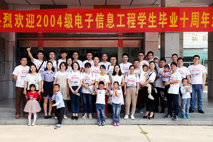 2004级电子信息工程从四面八方返回母校,重温恩师教诲,再叙同窗情缘。一朝离别,赴天南海北;十年聚首,忆青葱岁月。学院党委书记李娟、院长崔执凤、副书记吴长义、副院长郑贤锋、崔光磊及校团委副书记汪凯(04电子辅导员)等应邀出席了聚会活动。