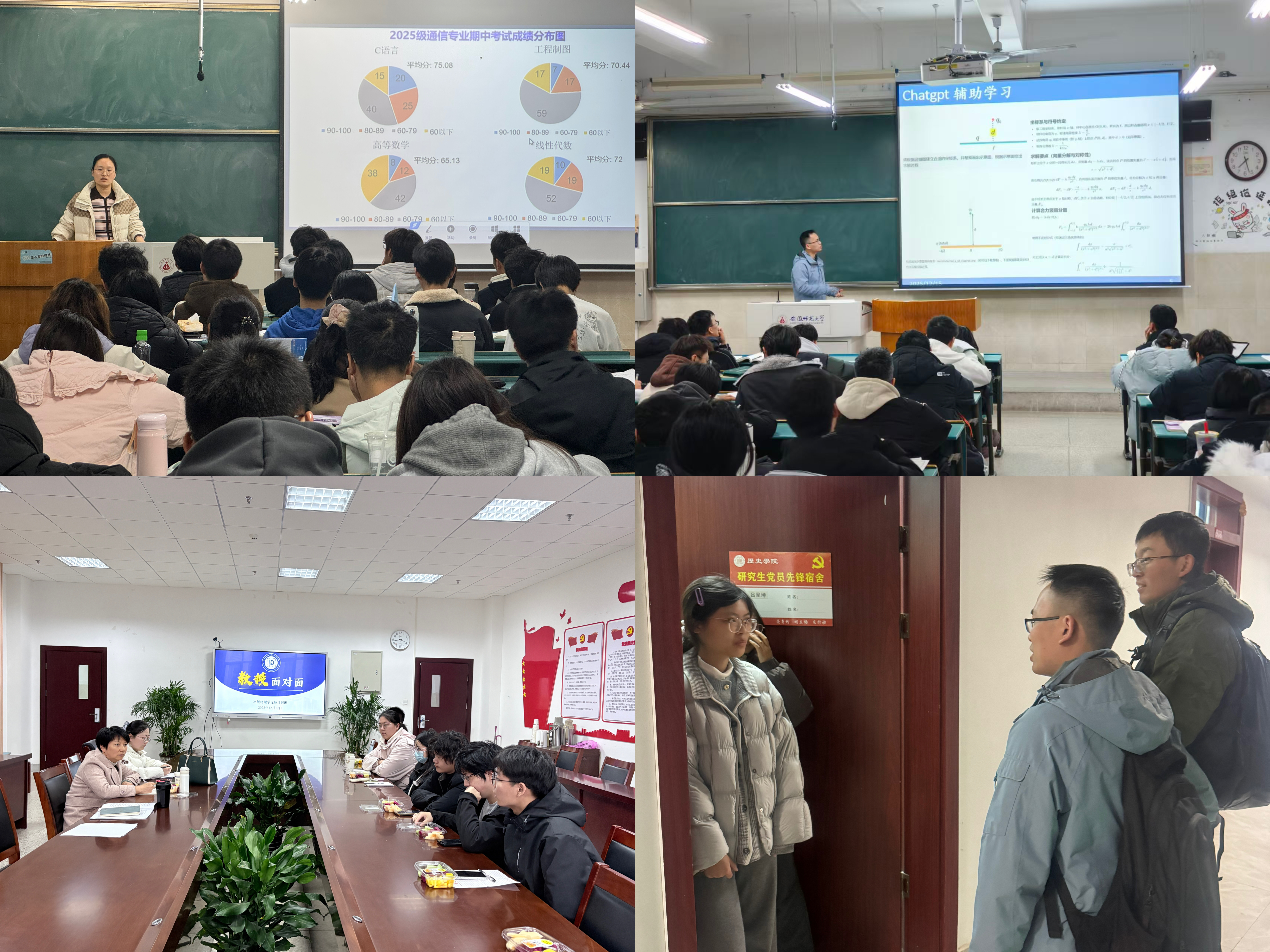 辅导员护航:深入一线,织密成长“防护网”。新生辅导员队伍坚持贴近学生、贴近实际,通过召开学风建设主题班会,强化纪律意识与目标教育。针对学业适应困难、成绩波动明显的学生,辅导员扎实开展“一对一”谈心谈话,并深入学生宿舍走访调研,及时了解学生思想动态与实际困难,实现思想引领、学业辅导与生活关怀的有机结合,为学生健康成长提供有力支撑。