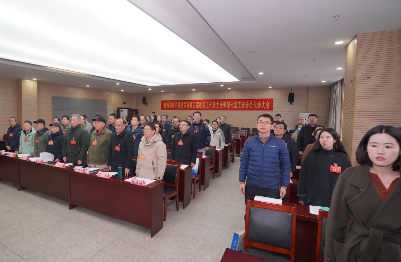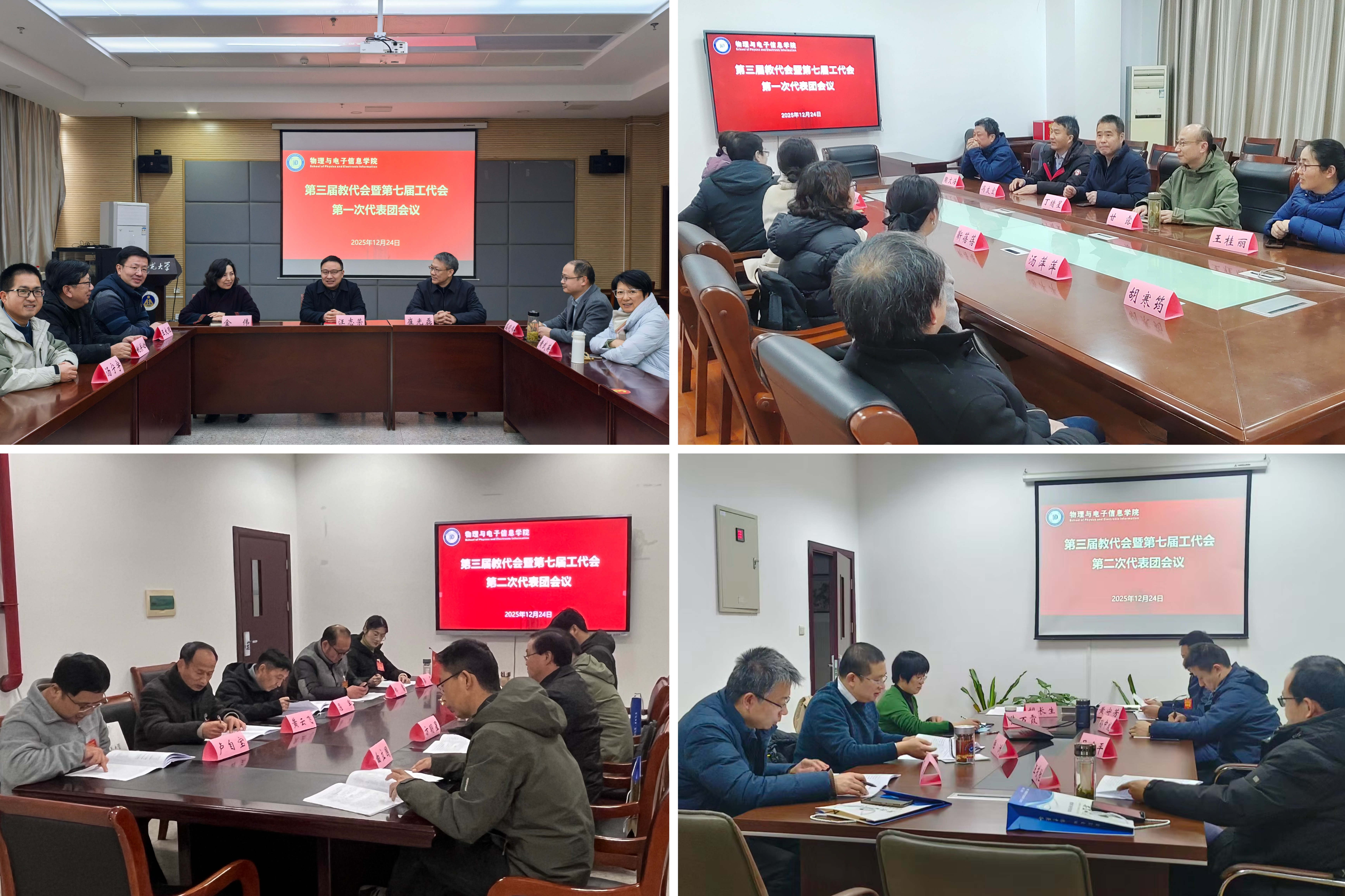 在物电楼304报告厅召开第三届教职工代表大会暨第七届工会会员代表大会。校教代会执委会副主任、机关党委书记汪俊武受邀出席,退休教师代表作为特邀人员列席会议,学院全体教代会和工代会代表出席会议。会议由学院党委书记宋静、院长吕建平分阶段主持。