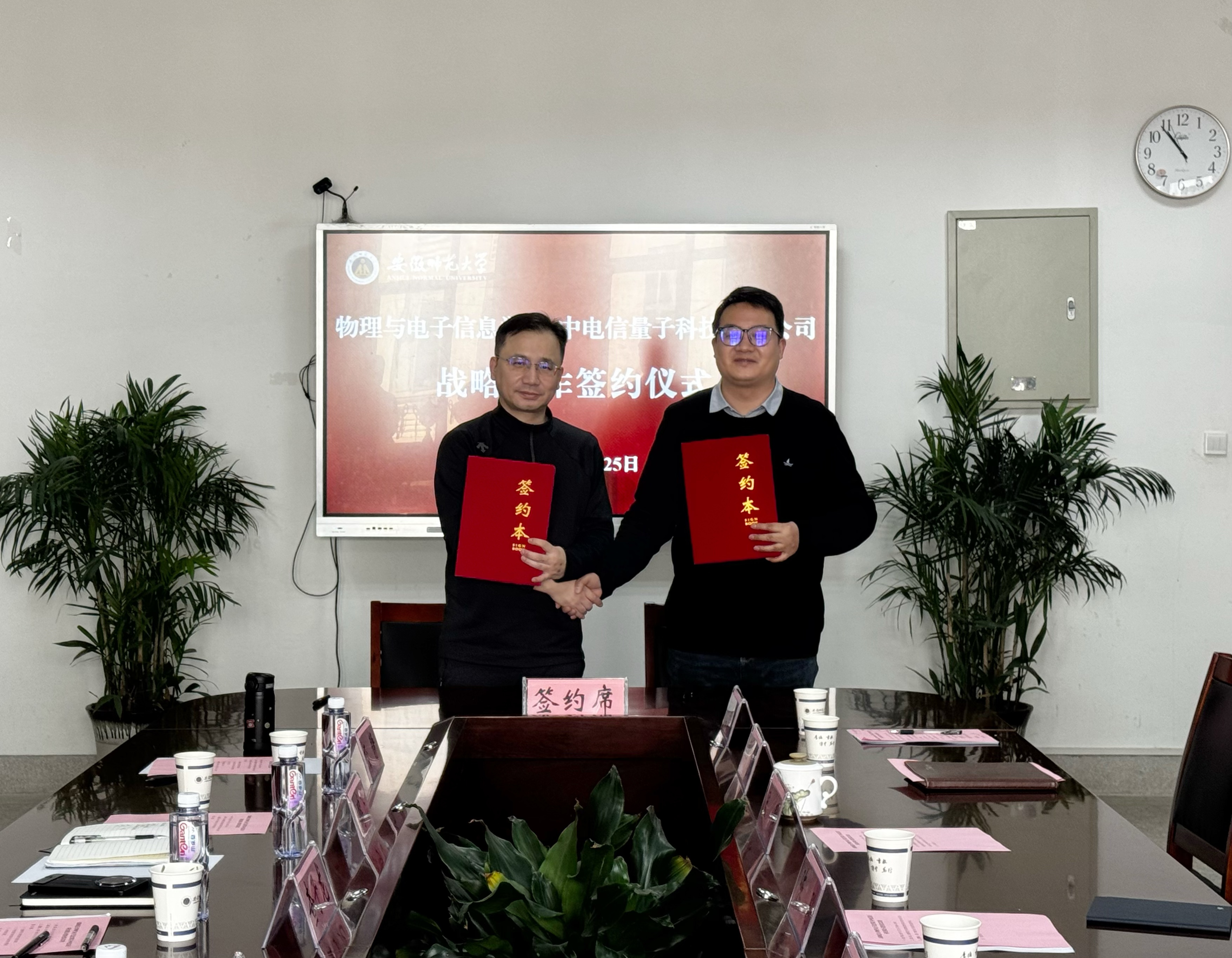 与中电信量子科技有限公司举行战略合作签约仪式。中电信量子科技有限公司总经理查子龙、量子计算和精密测量事业部教育行业总监朱鹏飞,中国电信股份有限公司芜湖分公司副总经理陈佳、教育行业客户部总经理蒋立君、本科总监杨静,校团委书记陈骁、以及无翼鸟