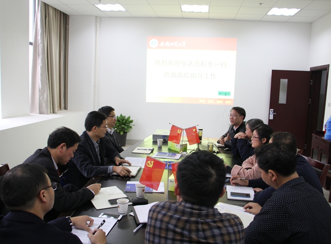 座谈会上,首先崔执凤院长从学院师资队伍、本科教学、学科建设、科学研究和人才培养情况等方面做了介绍,并就近期实验室建设、博士点申报、人才引进等重点工作向张庆亮校长进行了详细汇报。随后,学院领导班子其他成员做了补充汇报。会上,针对本科教学、本科实验设备更新、科研实验室建设、人才引进等工作中遇到的困难,张庆亮校长一一进行了详细的了解和深入沟通,对学院近年来所取得成绩和学院师生辛勤付出给予了充分肯定,对学院建设和发展规划给予了指导。