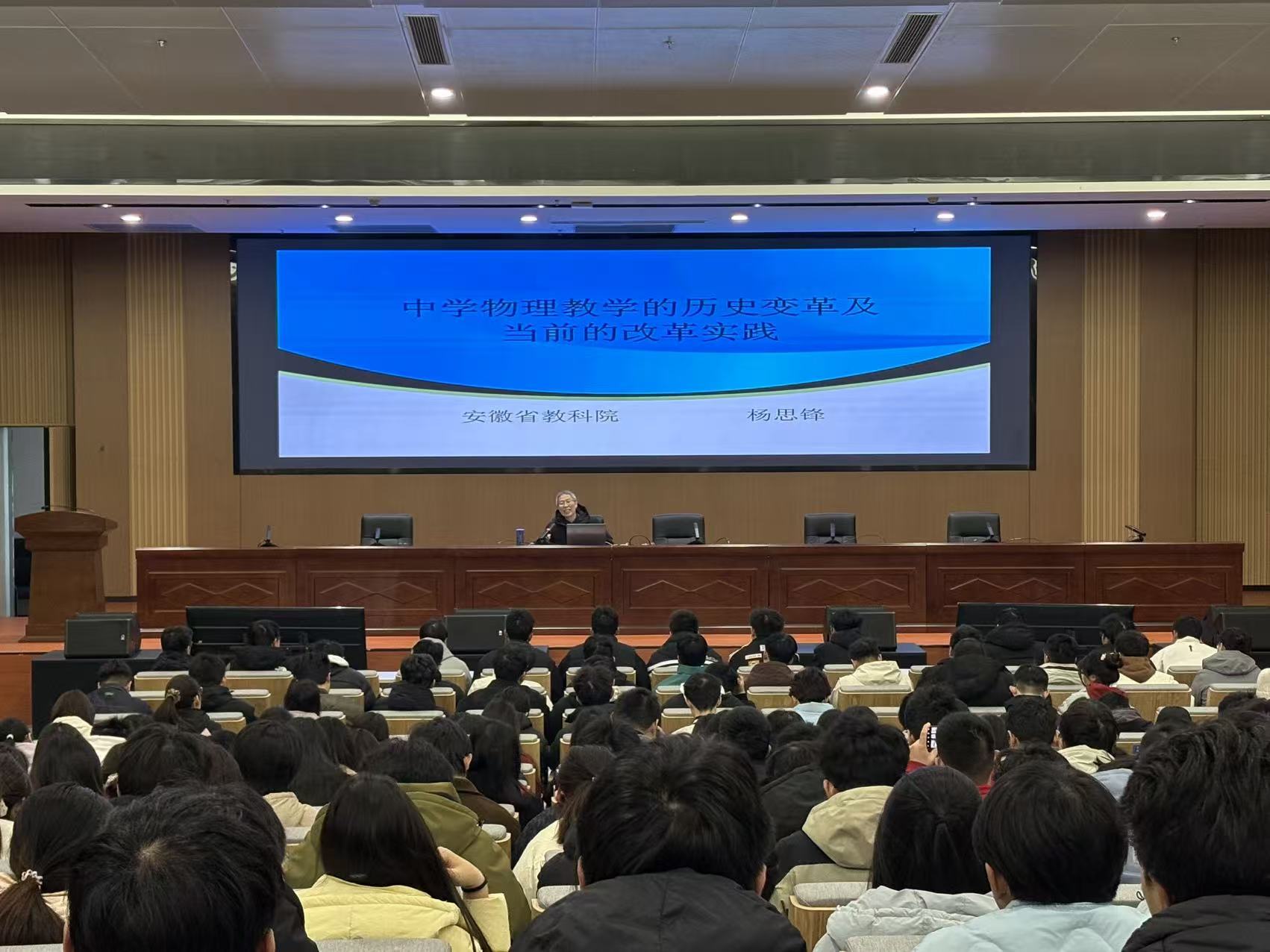 在文典楼西裙楼三楼报告厅举行《班级管理指导与训练》课程暨师范生教育教学能力提升系列讲座。本次活动邀请安徽省教育科学研究院物理教研员、中学特级教师杨思锋以及安徽省特级教师、安徽省首届江淮好班主任、“马鞍山市名班主任工作室”主持人、正高级教师方升钱作为主讲嘉宾,开展了两场精彩的教学分享。学院院长吕建平、物理系副主任汪志荣、辅导员邹孝龙,2023级物理学(师范)专业全体本科生及部分学科教学(物理)专业研究生参加讲座。