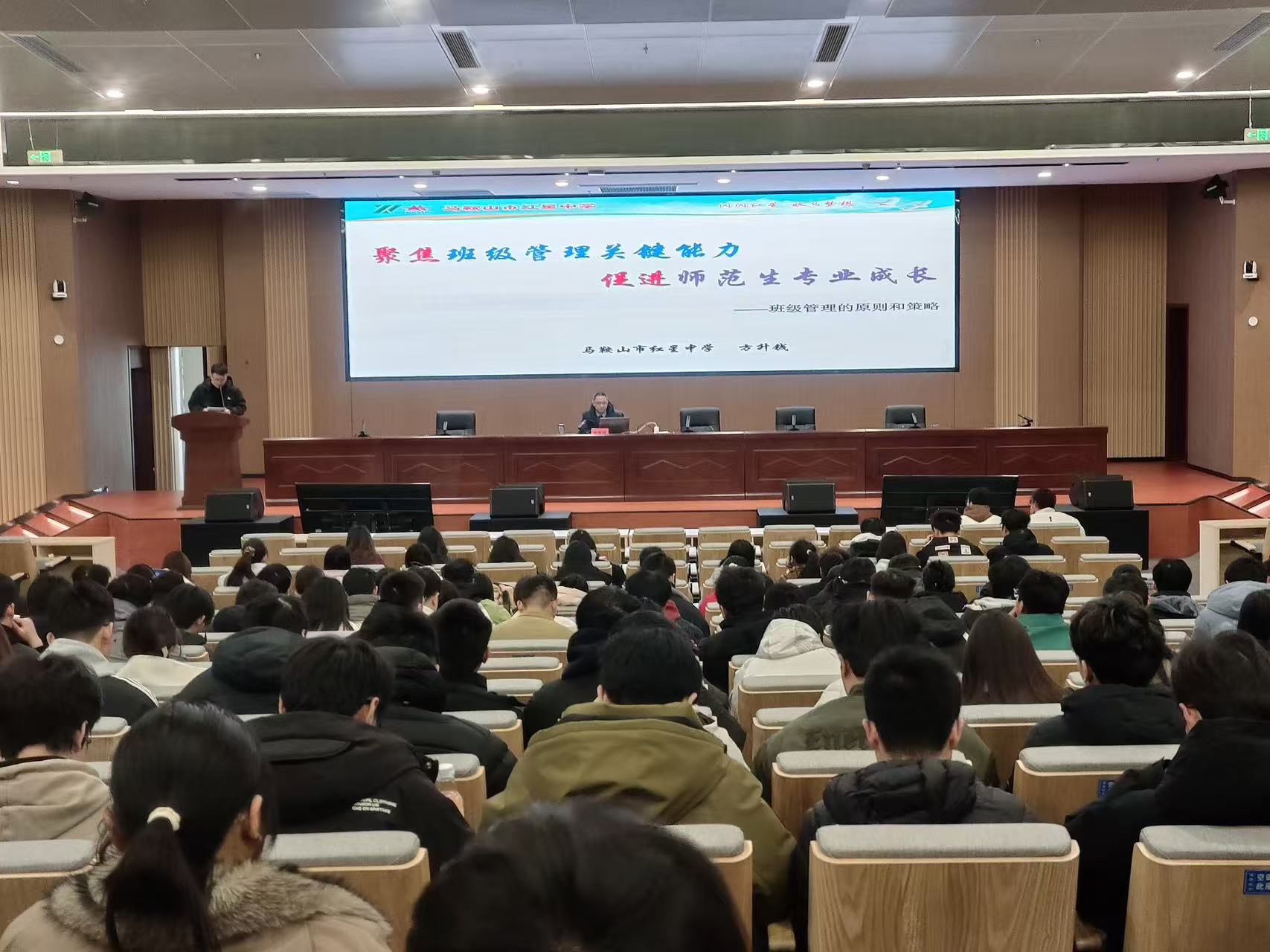 方升钱以《聚焦班级管理关键能力,促进师范生专业成长——班级管理的原则和策略》为主题,以教育家于永正"给初为人师的女儿20条贴心建议"为切入点,结合自身班主任工作经验,系统阐释了构建和谐班集体、激发学生潜能等核心问题。他着重解析了新时代班主任的角色定位、关键能力要求及班级常规管理策略,提出班级活动开展的"七镜意识"等创新理念,强调"教育者永葆教育激情与职业初心"的重要性。作为安徽省模范教师、长三角班主任基本功大赛一等奖获得者,方升钱通过真实案例与教育情怀的融合,为师生呈现了一场兼具专业深度与教育温度的讲座。