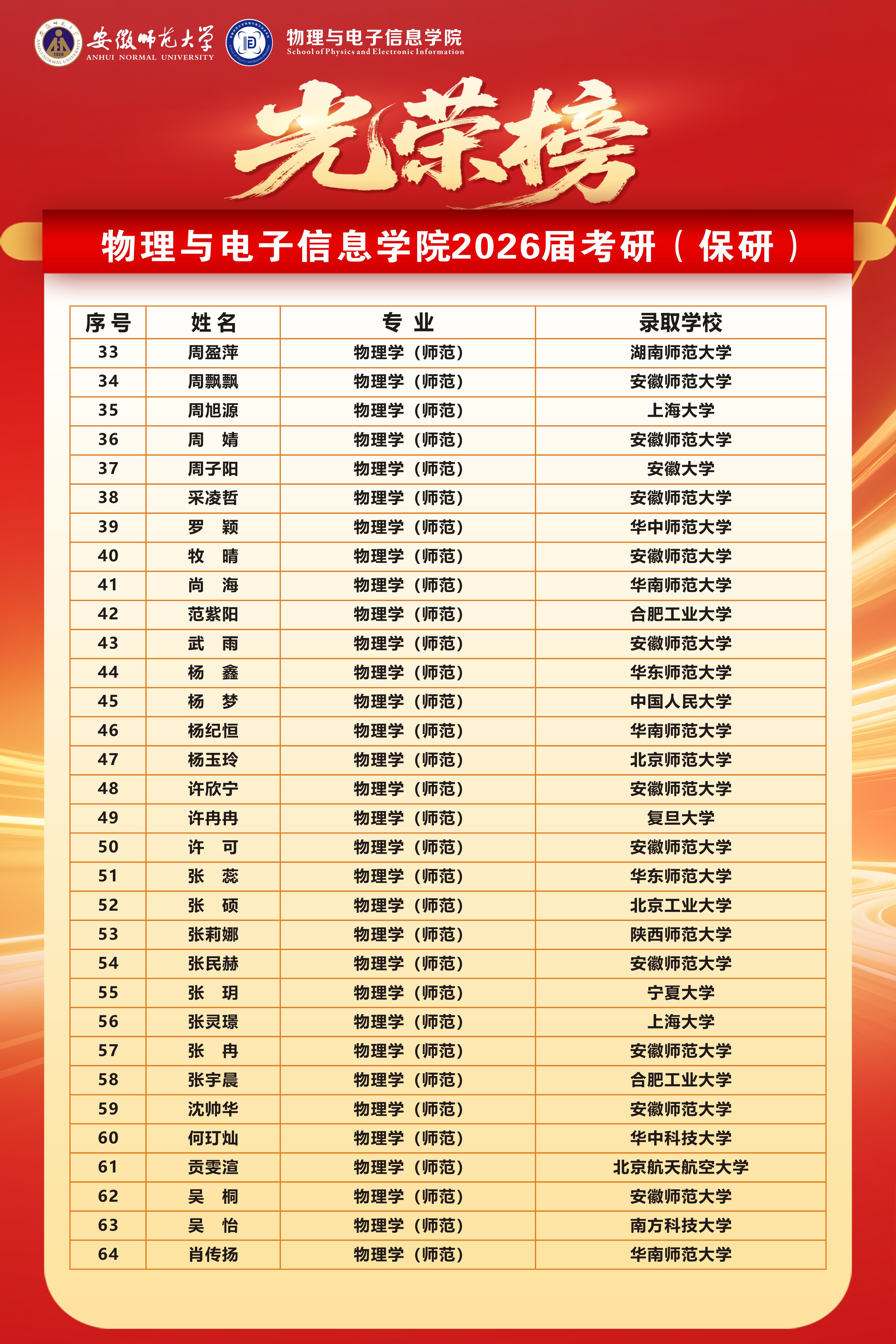 二、两个国家级一流专业升学率再创新高:物理学(师范)专业达55.8%,电子信息工程专业高达70.3%,均为学院历届最高。