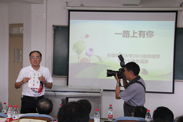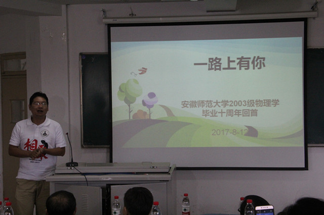 校友代表们也纷纷汇报了自己在这十年中所取得的各项成绩,分享了在此期间或幸福或辛酸的故事,抚今追昔,当年的青涩早已褪去,不管从事何种职位,都已经取得了一定的成绩,大家都非常感激当年学校、学院和老师们对自己的培养。时任学院党委副书记的台启权指出母校是校友的精神家园、心灵港湾,师生、同学之间的感情是最纯粹的、儒雅的、高尚的;教师代表方正华、黄时中、殷晓斌用激情洋溢的讲话把同学们带到了十年前的课堂,又如家长般教诲校友们要善待自己,善待家人,善待工作;学院党委副书记、时任辅导员吴长义拿出珍藏十年的学生信息卡,分享与学生共成长的故事;时任辅导员张法保寄语校友:“十年太长,常回见看看”。