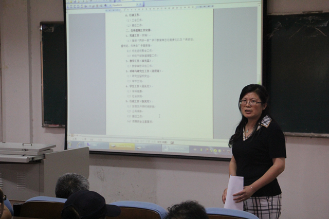院党委书记李娟强调暑期要继续加强推进“两学一做”学习教育常态化制度化以及“讲政治、重规矩、作表率”专题教育工作,要求各支部将专题教育与专业、学科建设相结合开展各项活动。会上,李娟通报了校友返校聚会情况,提出了相关要求,另外还对校科级干部换届调整情况进行说明。