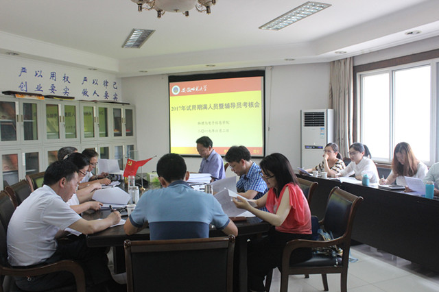 召开2017年试用期满人员暨2016-2017学年辅导员考核工作会。学院领导班子、各专业负责人及实验中心主任参加了本次考核会议。学院新进教师甘露、左万龙、宋凤楼及2016-2017学年全体专兼职辅导员参加考核。