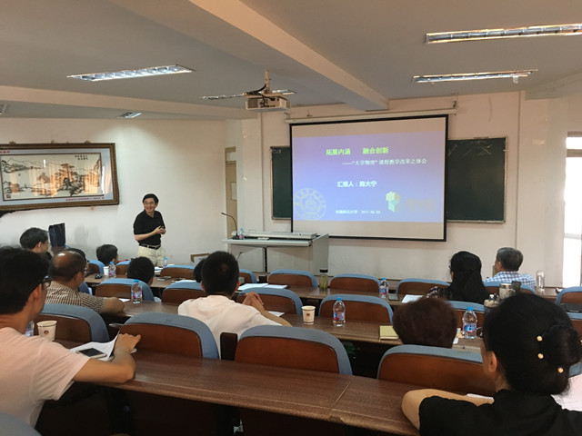在行政楼三楼报告厅召开了大学物理省级教学团队建设专题研讨会。南京航空航天大学副校长、国家级教学名师施大宁教授应邀参加了研讨会。