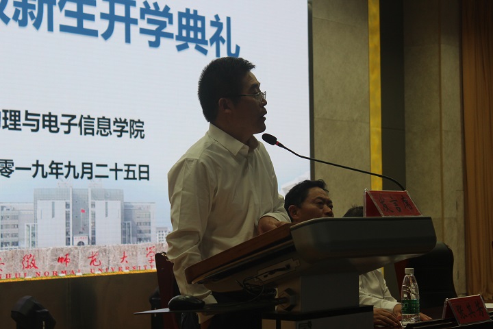 随后,学院2010届优秀校友、国家优秀青年基金获得者、来自中国科学技术大学的博士生导师丁冬生教授讲话,他希望同学们要珍惜在大学里最美好的青春时光,结合自己的兴趣和专业,以强烈的求知欲,时不我待的紧迫感,在课堂上、在实验室、在学科竞赛中学习钻研,努力掌握科学方法,养成良好学习习惯,做一个严谨认真、博学慎思的求知者,为自己的未来生涯发展筑牢扎实的学识基础。电子信息工程专业负责人刘小明老师作为教师代表发言,他以一位普通教师的身份对所有新生作出承诺,坚持备好每一次课,做好每一次辅导,送走每一位合格的毕业生,同时,他也对新生学子提出了要求:做好每一次预习,听好每一次课程,完成每一次作业,度过充实的大学四年。