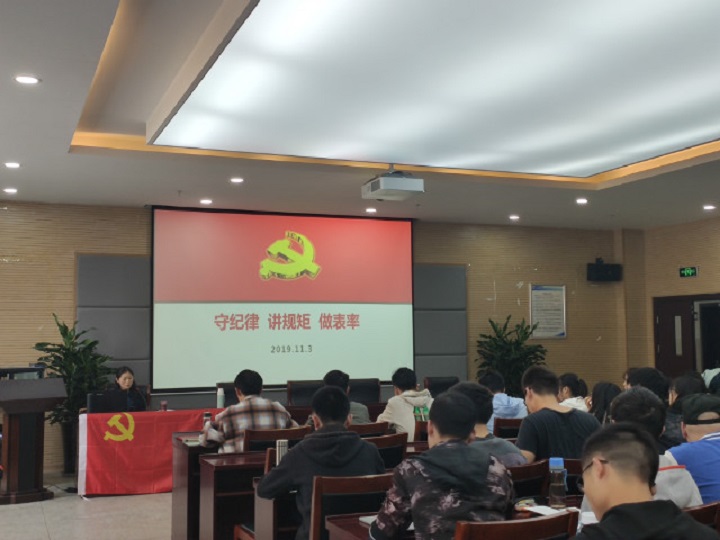 第7期党员培训班在物理楼304会议室继续开展专题培训。纪委办公室副主任李叶青以“守纪律 讲规矩 做表率”为题为学员们讲授了一堂党章学习的培训课。