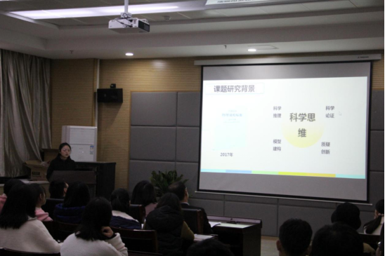 此次主讲人分别是17级课程与教学论丁珂、17光学凡佳囡和17无线电物理陈晨同学。首先,由丁珂同学向大家汇报了自己通过将物理教学中的科学方法显性处理,进一步凸显知识获得的过程,从而更加深入并且持久的掌握物理知识,提升学生科学素养的思路历程。