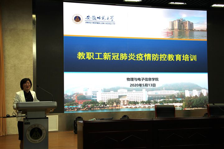 会上,李娟对全体教职工进行了新冠肺炎疫情防控教育培训。她首先带领教职工学习了习近平总书记关于新冠肺炎疫情防控工作的重要讲话,解读了上级和学校关于疫情防控的文件(方案)、安徽省学校新冠肺炎师生员工个人防护手册、安徽师范大学新冠肺炎师生员工个人防护手册(返校开学篇)《关于做好教职工新冠肺炎疫情防控教育培训的通知》和《关于2020年春季学期学生返校的通知》;领学了《教育系统依法做好新冠肺炎疫情防控工作有关法律问题指引》(8条)等疫情防控知识 。她从正确把握疫情防控形势、充分了解疫情防控政策、全面熟悉疫情防控知识、严格遵守疫情防控规范、提高疫情防控思想认识等五个方面进行了专题培训;从三个最、三个时间节点、成效、疫情防控阶段、我校的三个阶段、近期疫情情况等方面解读了疫情防控形势;她希望全体教职工要高度重视当前的疫情形势,尤其是学生返校后的管控工作,不能松懈;要服从中央、省、芜湖市、学校、学院的统一要求和安排;要坚决做到不信谣、不造谣、不传谣。