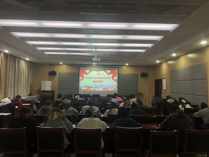 邹孝龙)10月25日晚,学院分党校在物理楼335会议室和304会议室举行培训班结业考试。本期积极分子和党员培训班学员参加考试,考试由培训班班主任刘燕和副班主任邹孝龙监考。