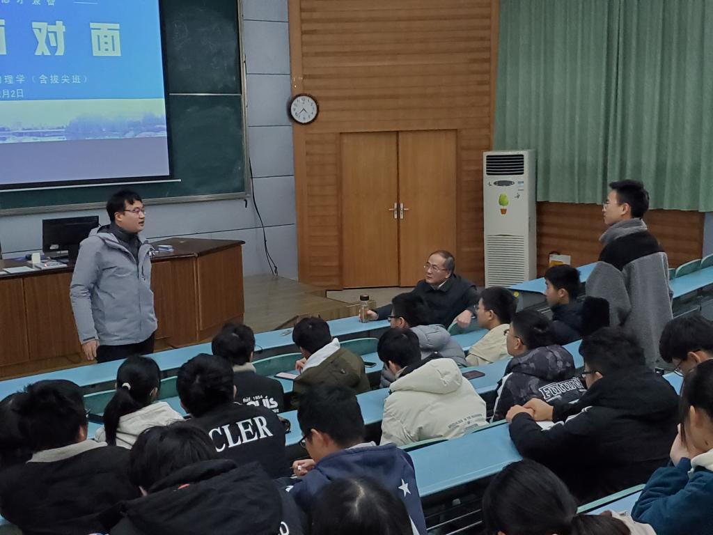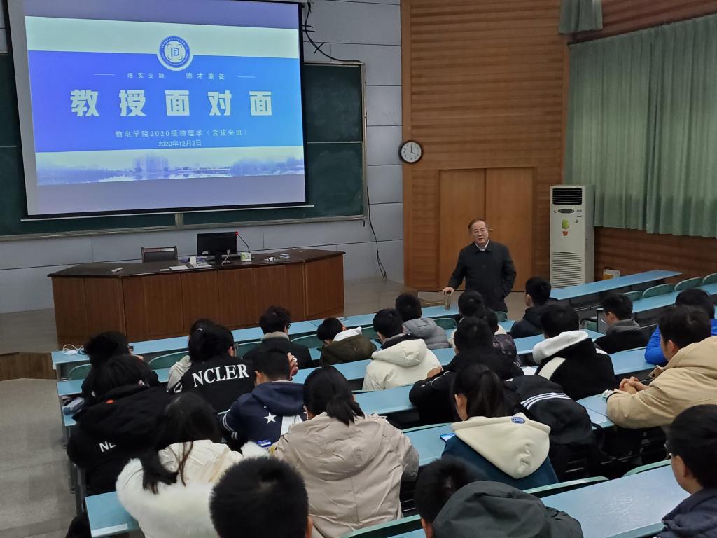 通过学院育人品牌——“教授面对面”精准开展了新生专业教育辅导。学院凤尔银教授和吕建平教授作为嘉宾通过座谈交流的形式,围绕学生专业学习、生活适应、人际交往等方面与20级物理学师范专业和拔尖班同学开展了深度交流。辅导员汪光麒主持了交流会。