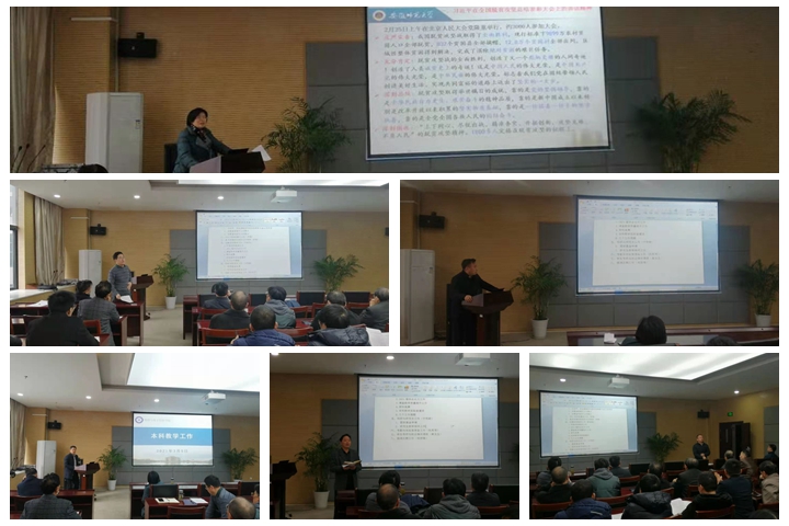 布置会上,院党委书记李娟首先布置了收听收看两会有关事项,要求全体教职工通过电视、广播、报刊、网络等收看收听两会开闭幕会及政府工作报告等有关报道,自觉学习两会精神。她传达了习近平在全国脱贫攻坚总结表彰大会上的讲话精神,解读了安徽省教育工委、教育厅和科技厅2021年工作要点,布置了学院本学年的重点工作,她希望全体教职工新学期继续以习近平新时代中国特色社会主义思想为指导,深入贯彻党的十九大和十九届二中、三中、四中、五中全会精神,把握新阶段,贯彻新理念,融入新格局,坚持“四个服务”的发展方向,坚持“教学立院、科研强院、人才兴院”的办学理念,坚持高质量发展的总体要求,以立德树人为根本,以人才队伍建设为抓手,以“一流学科、一流专业、一流课程”为牵引,着力推进学院各项事业再上新台阶,以优异的成绩向建党100周年献礼。