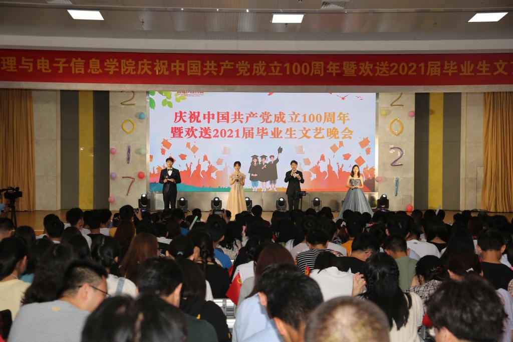 在花津校区理科实训大楼一楼报告厅举办庆祝中国共产党成立100周年暨欢送2021届毕业生文艺晚会。校党委常委、纪委书记、监察专员周新发,机关党委书记、机关工作处处长、组织部副部长姜长付,党委宣传部副部长王少仁,教务处副处长、创新创业教育学院副院长崔光磊,党委学工部副部长、学生处副处长项家春,招生就业处副处长刘振杰,研究生院副院长金涛,总务处副处长李靖宇,校团委副书记廖仲明,信息管理中心副主任吴长义,与无翼鸟