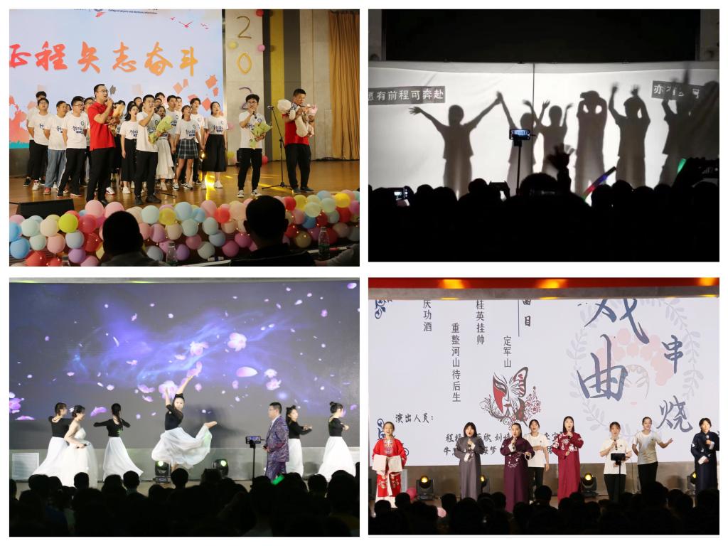 【新时代,矢志奋斗】青衿之志,履践致远。歌伴舞《起风了》动听的歌声与曼妙的舞姿交织,余音绕梁,倾述离别之情。舞台剧《光影物电》采用光影的手法,记录了从高考结束到考研毕业这一路的点点滴滴,既充满生活气息又令人万千感慨。戏曲串烧《大好河山》用婉转的戏腔和曲调,沉浸于戏曲的世界,感受戏曲的韵味。师生联唱《夜空中最亮的星》《凤凰花开的路口》饱含着无翼鸟