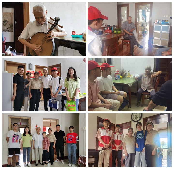 志愿者团队在前期摸底了解“五老”具体情况之后,26日,在院关工委常务副主任陶绪德老师的带领下,逐一走访慰问老党员老教师。志愿者们每到一家,都认真聆听老同志们的初心故事和奋斗历程,仔细询问他们的身体及生活情况,感谢他们为学院的建设与发展做出的贡献。走访慰问期间,志愿者了解到很多老同志在退休之后仍然不忘初心,积极发挥余热,为社区和群众服务,处处发挥先锋模范作用,十分钦佩。老教师斯文珍向志愿者们讲述了她当时在求学路上所发生的有趣的故事,教导青年党员知所从来,方明所去。84岁高龄的卢秉嵩老师提到,新青年处在好时代,国家和社会提供了很好的学习环境,青年学子生要把握机会,牢记使命担当,在不懈奋斗中绽放青春之花。建党百年之际开展走访老党员活动具有非常特殊重大的意义,激励着每一位党员志愿者勇往直前,志愿者们纷纷表示,这既是一场丰盛的思想盛宴,又是一次鲜活的党史学习教育,更为今后不忘初心、砥砺前行提供强有力的精神支柱。
