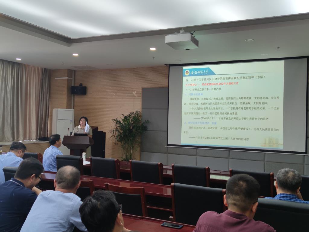 会上,院长郑贤锋领学了省教育厅《关于在师德专题教育中开展高校师德师风建设问题专项整治工作方案》精神,传达了校党委书记胡朝荣在全省教育系统教师思想政治和师德师风建设视频推进会上的讲话精神,通了全省教科文卫系统“师德先进个人”评选结果,对学院张季谦老师的当选表示热烈的祝贺。李娟作专题辅导报告,详细解读了习近平总书记关于教师队伍的重要讲话和指示批示精神,全文学习了习近平给全国高校黄大年式教师团队代表的回信,希望全体教师内化于心、外化于行,立德树人,以身示范。