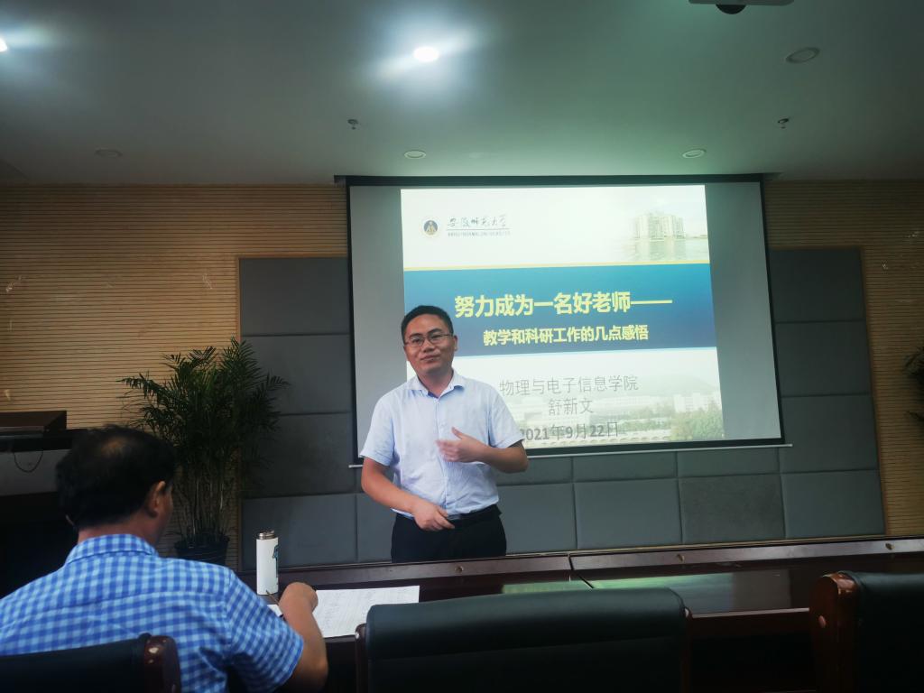 舒新文教授作专题分享,从“努力成为一名好老师”出发,结合工作实际阐释了自己对好老师的理解及一路走来的历程,分享自身教学科研、学生培养和团队建设方面的经验做法,引起了老师们的共鸣。