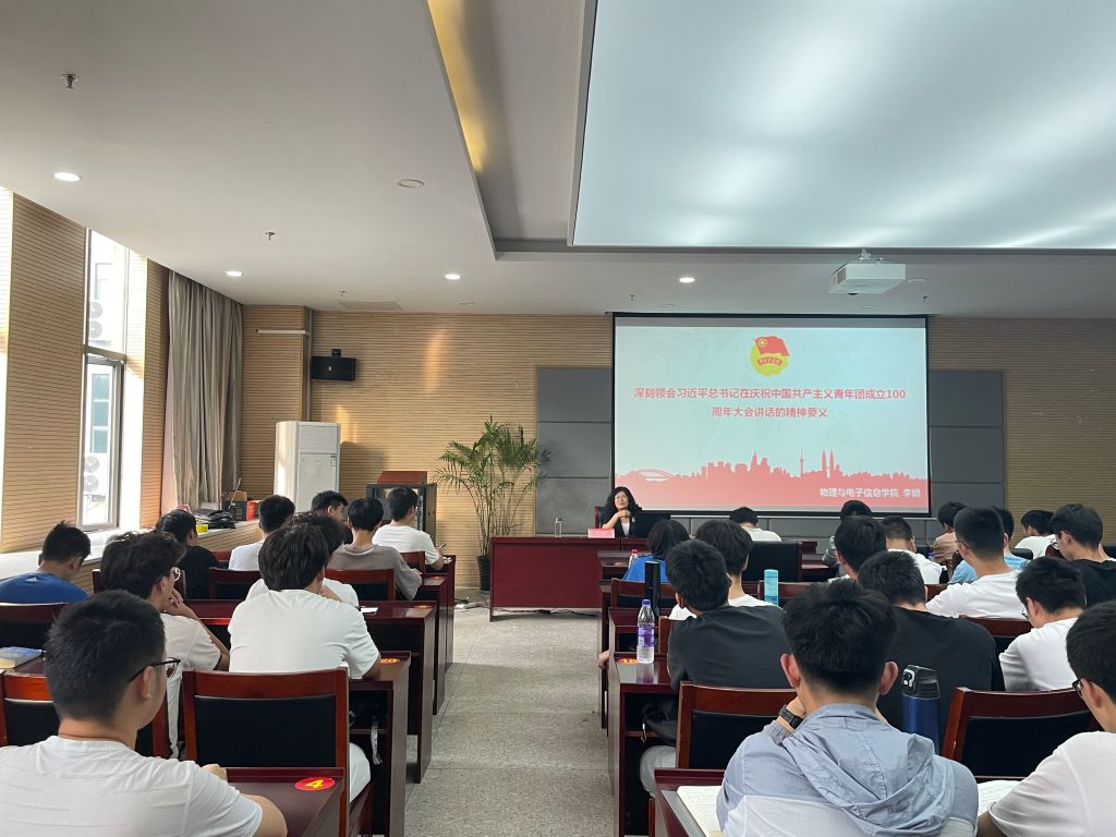 党委书记李娟以《深刻领会习近平总书记在庆祝中国共产主义青年团成立100周年大会讲话的精神要义》为题在物理楼304会议室为2021级和2020级物理学拔尖人才班全体同学讲授形势与政策课。