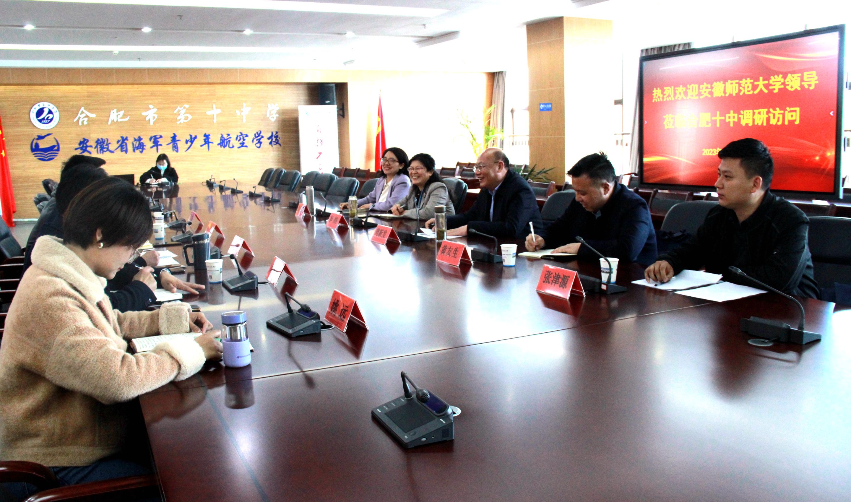 3月13日下午,周新发一行来到了合肥市第十中学开展交流,合肥十中校长姜际龙、副校长王锋等参与座谈会。会上,合肥十中教务副主任姚远介绍十中基本情况、在校工作师大毕业生发展情况、师大实习生实习等情况。双方围绕师范生培养与就业等问题开展了具体交流。会后,周新发一行还参观了合肥十中海军航校的航空文化馆。