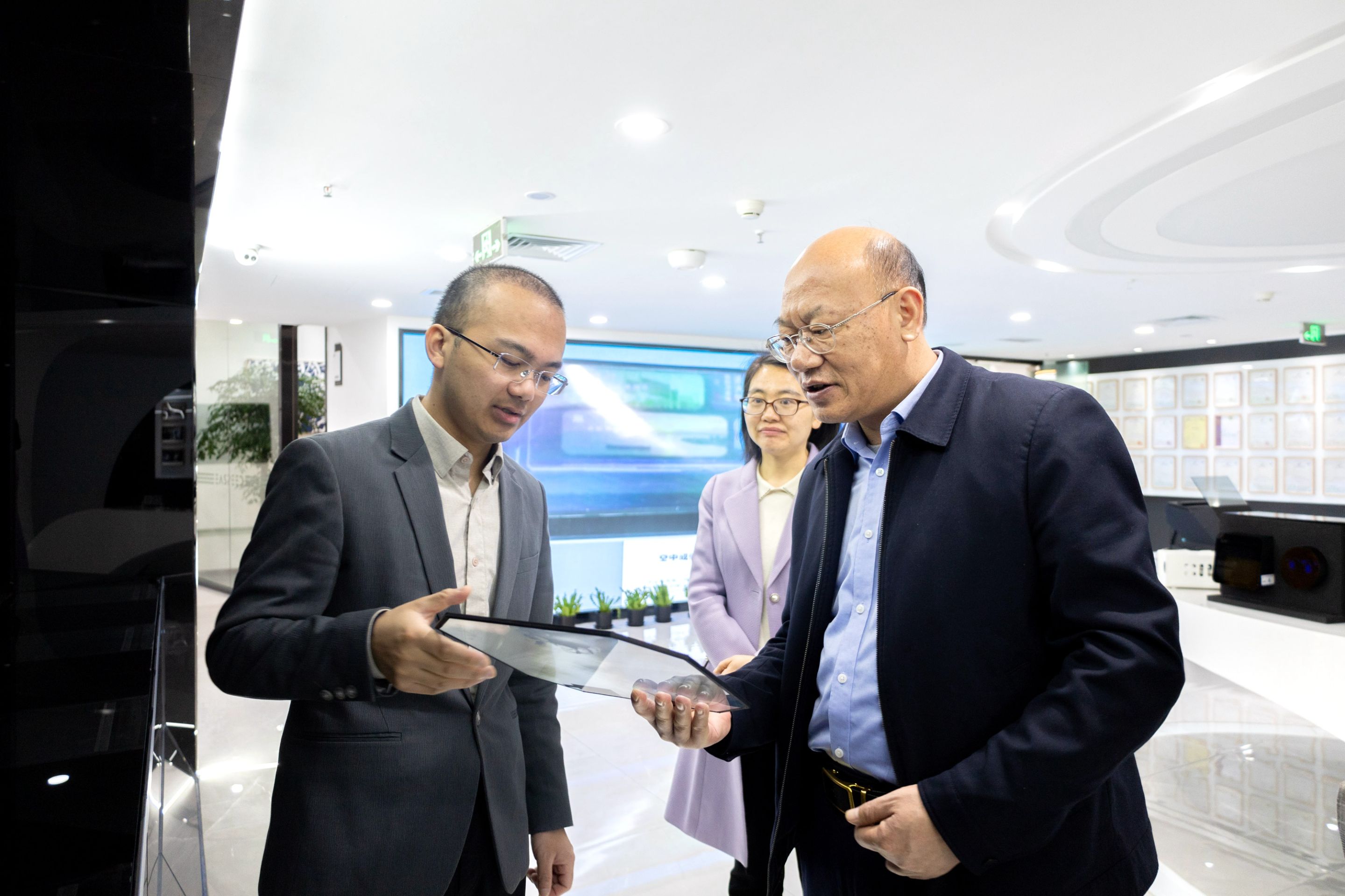 3月14日上午,在中安创谷科技园,周新发一行参观了安徽省东超科技有限公司展厅,东超科技创始人、副董事长范超详细介绍了公司核心技术、产品布局、发展战略等情况。在座谈交流中,双方围绕新工科人才培养与就业等问题进行了深度交流探讨。