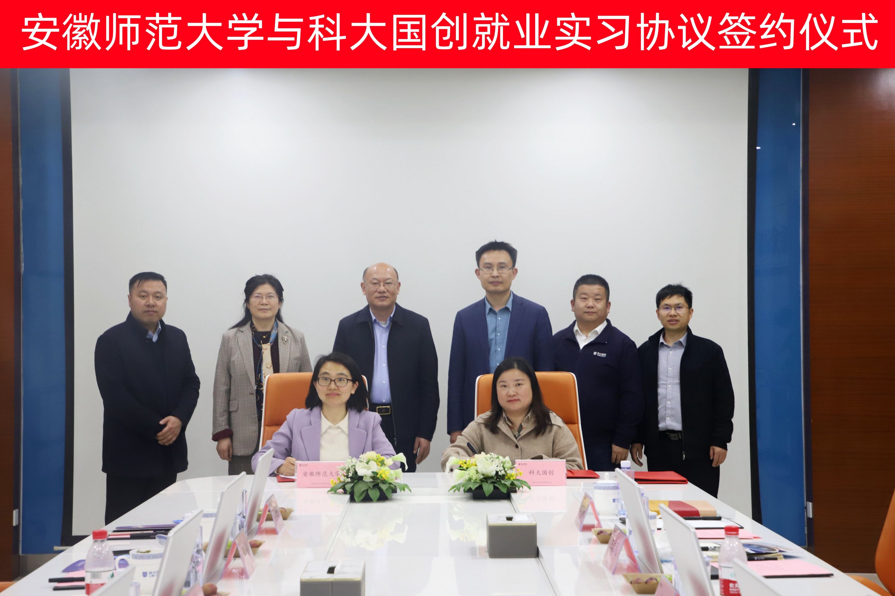 安徽师范大学实习就业基地授牌仪式暨校企合作座谈会在科大国创云网科技有限公司举行。科大国创副总裁李飞希望双方持续加强交流,共同探索特色鲜明的校企合作新模式、新路径,积极推进产教深度融合,助推校企合作高质量发展。科大国创云网副总经理冯强中详细的介绍了公司情况,重点介绍了公司多年来在校企合作方面取得的成果。周新发与李飞共同为实习就业基地揭牌,张爱清与科大国创云网总监兼经管中心总经理陶盛南共同签署就业实习协议,双方就校企合作进行深入交流。期间,周新发一行在科大国创副总裁李飞的陪同下参观科大国创公司展厅,详细了解科大国创各类业务板块技术研发与应用情况。