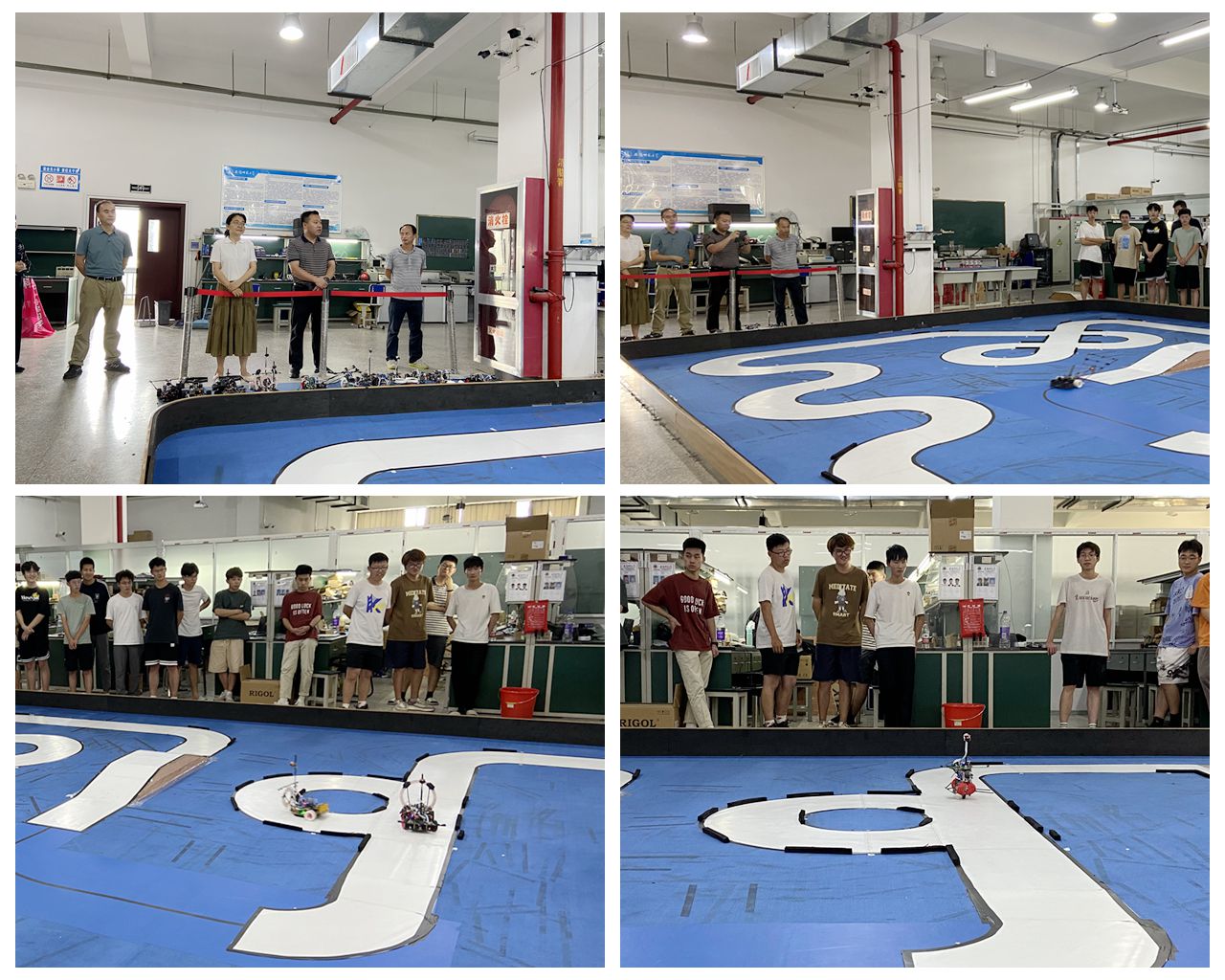 随后,工程实训主任蔺玉柱介绍了智能车竞赛的规则以及参赛作品的性能情况等,参赛学生在自制的赛道进行了智能车演示,学院领导向集训学生发放了慰问品。