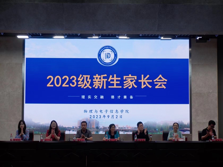 在理化大楼报告厅召开2023级新生家长会。学院党委书记李娟、院长郑贤锋、副书记黄友生、教学副院长张爱清,新生辅导员刘燕、邹孝龙、张月停,全体新生家长及部分新生参会。会议由李娟主持。