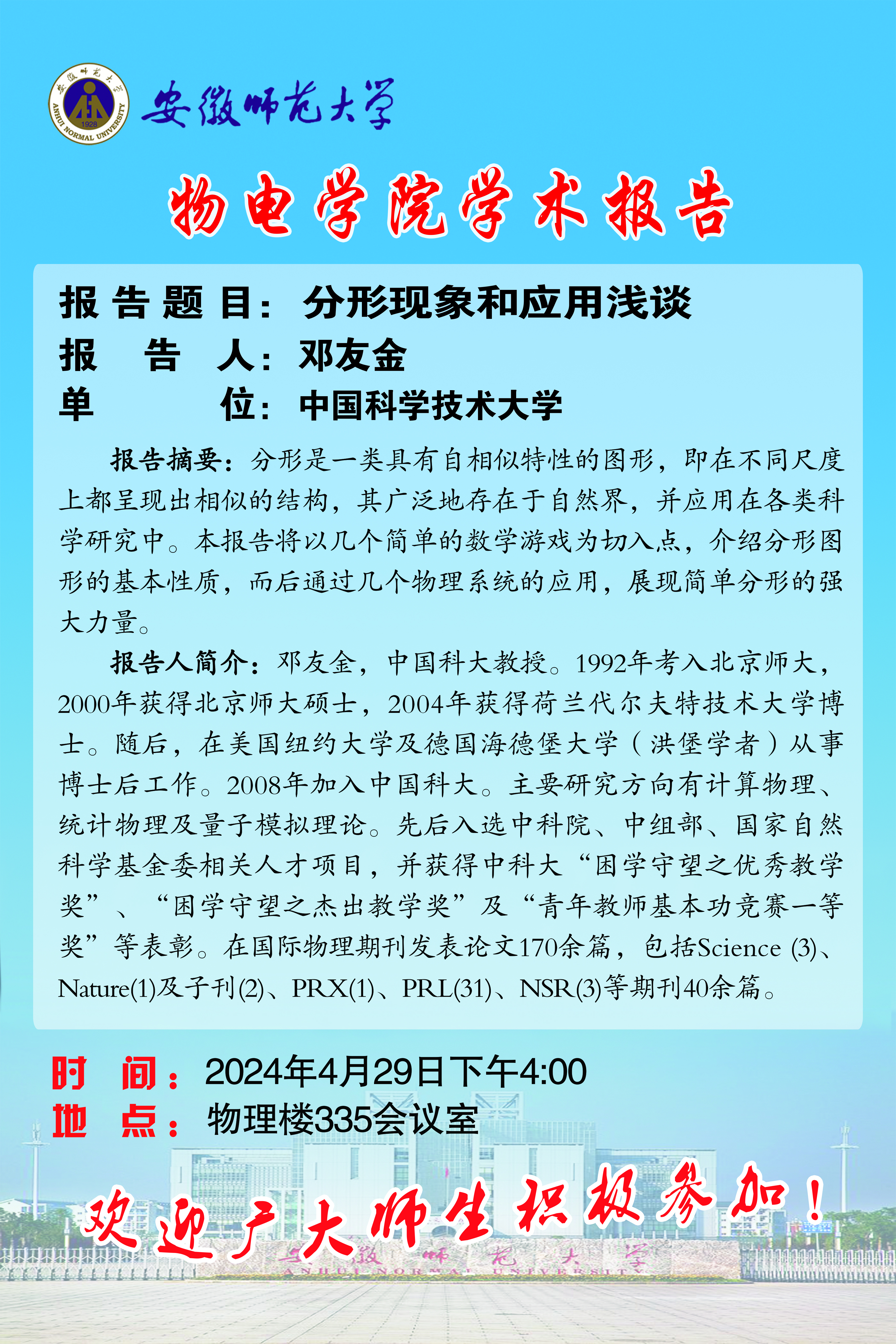 地址:花津校区-安徽省芜湖市九华南路189号 邮编:241000 电话:0553--3869894