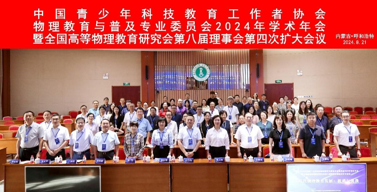 2024年8月20日至22日,物理教师教育研究中心的教师王长江、汪志荣,以及研究生李婷、王神姣一行四人,前往内蒙古呼和浩特,参加了由中国青少年科技教育工作者协会物理教育与普及专业委员会、全国高等物理教育研究会与内蒙古师范大学联合主办的“中国青少年科技教育工作者协会物理教育与普及专业委员会2024年学术年会暨全国高等物理教育研究会第八届理事会第四次扩大会议”。此次会议由内蒙古师范大学无翼鸟