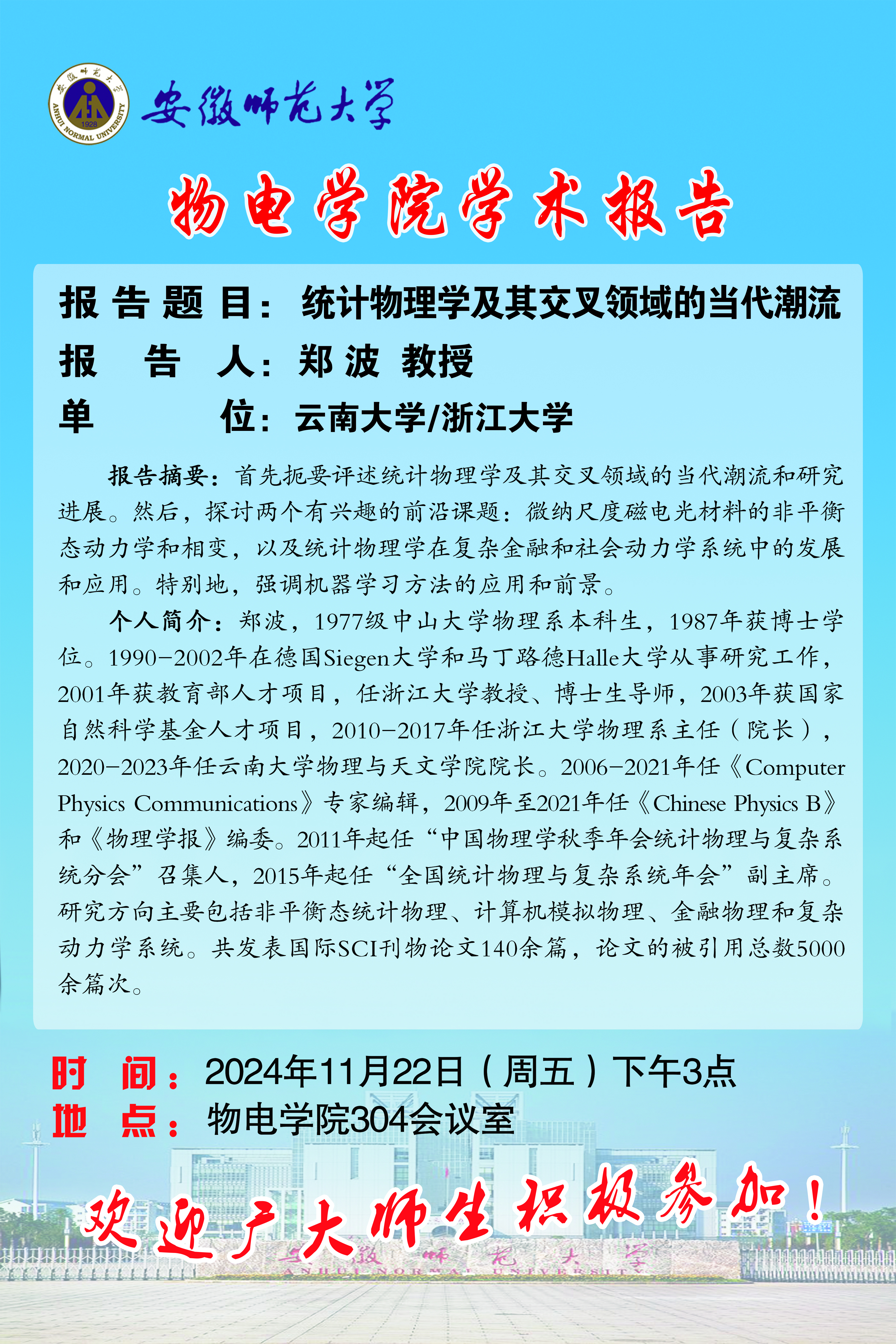 【学术预告】物电讲坛第50期:统计物理学及其交叉领域的当代潮流
